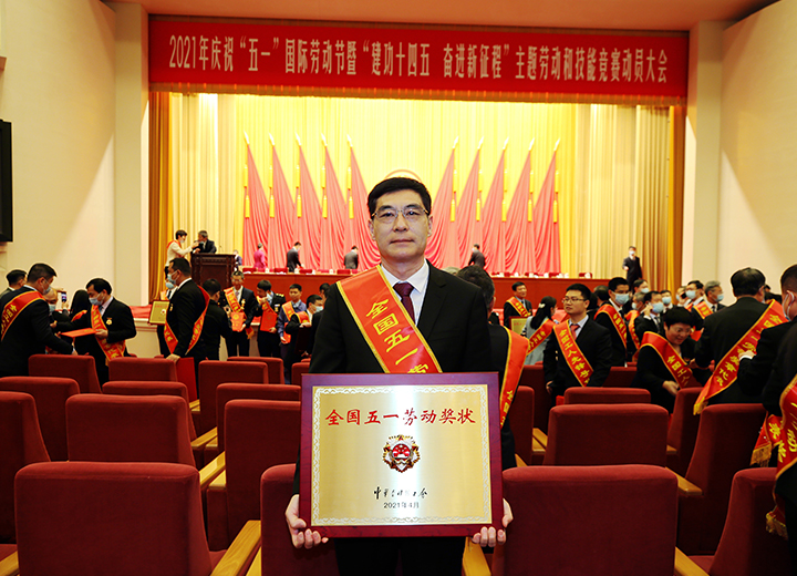 公司榮獲全國(guó)五一勞動(dòng)獎(jiǎng)狀,集團(tuán)董事長(zhǎng)苗樹文登臺(tái)領(lǐng)獎(jiǎng)。