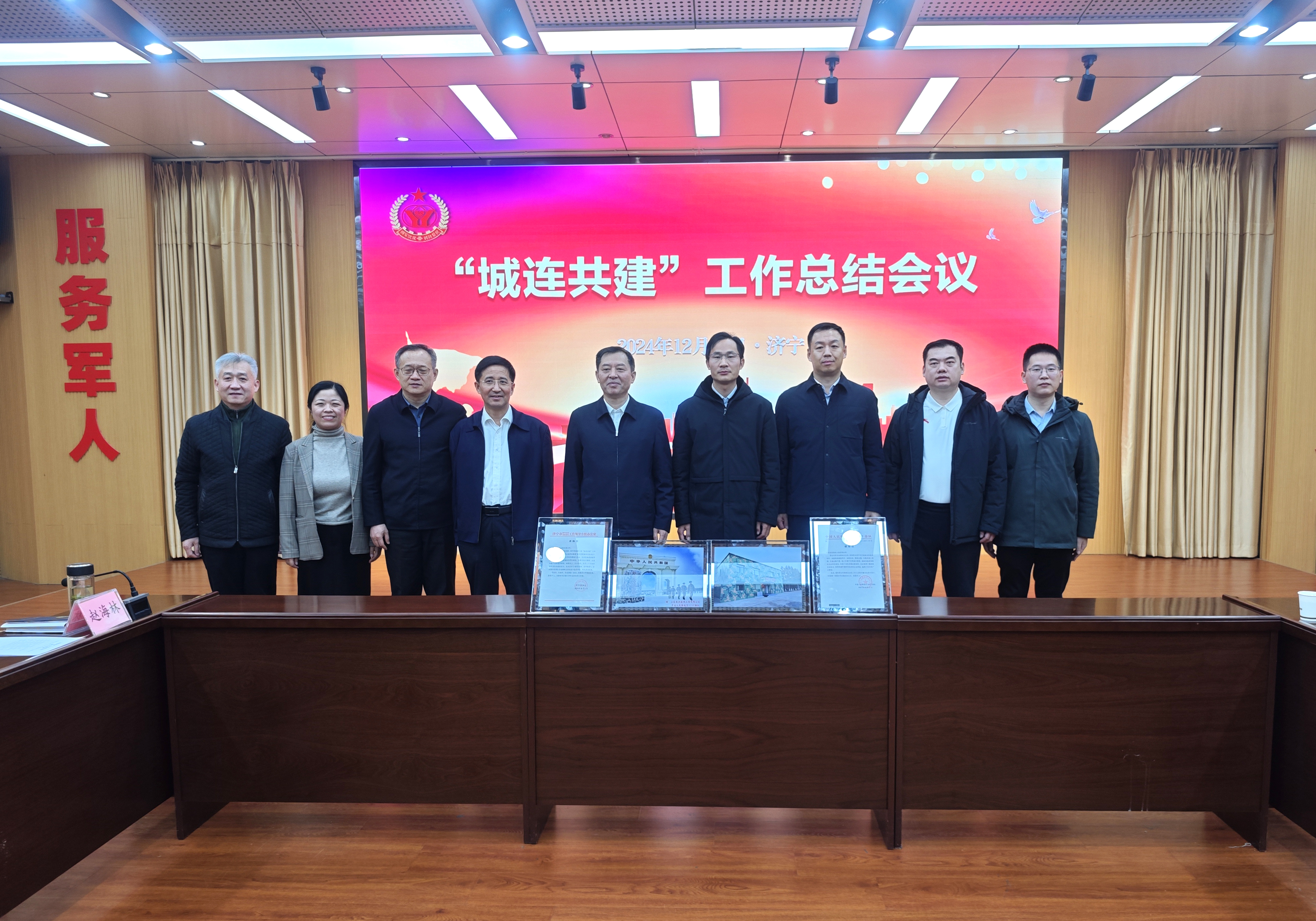 濟(jì)寧市“城連共建”工作總結(jié)會(huì)議召開,濟(jì)寧市人民政府副市長(zhǎng)、市公安局局長(zhǎng)、一級(jí)巡視員李海洋現(xiàn)場(chǎng)頒發(fā)了中國(guó)人民解放軍某部寫給山東經(jīng)典建設(shè)工程有限公司的感謝信、濟(jì)寧市雙擁辦的表?yè)P(yáng)信。”