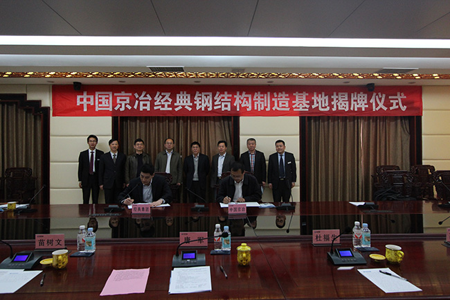 揭牌儀式前,中國京冶鋼結(jié)構(gòu)事業(yè)部常務(wù)副總經(jīng)理常好誦和經(jīng)典集團(tuán)董事長苗樹文在公司三樓會議中心共同簽訂了戰(zhàn)略合作框架協(xié)議。中國京冶與經(jīng)典集團(tuán)將本著平等、誠信、互惠、共贏的原則,利用各自優(yōu)勢在鋼結(jié)構(gòu)建筑領(lǐng)域建立長期戰(zhàn)略合作伙伴關(guān)系,在高層、超高層鋼結(jié)構(gòu)建筑、大跨度鋼結(jié)構(gòu)建筑、鋼結(jié)構(gòu)住宅產(chǎn)業(yè)化、鋼結(jié)構(gòu)工程設(shè)計施工制造管理、節(jié)能環(huán)保維護(hù)系統(tǒng)等領(lǐng)域開展項(xiàng)目工程合作、科研與技術(shù)合作。