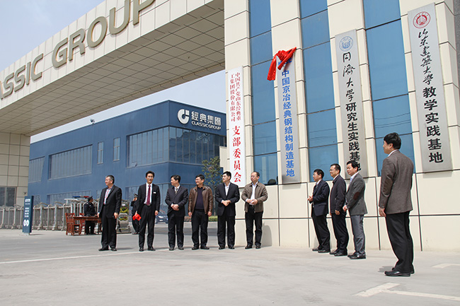 4月17日上午,經(jīng)典集團(tuán)舉辦中國京冶經(jīng)典鋼結(jié)構(gòu)制造基地揭牌儀式。中國鋼結(jié)構(gòu)協(xié)會秘書長侯兆新,兗州區(qū)委常委、工業(yè)園區(qū)黨工委副書記、管委會副主任唐軍共同為基地揭牌。中國京冶工程技術(shù)有限公司鋼結(jié)構(gòu)事業(yè)部常務(wù)副總經(jīng)理常好誦,副總經(jīng)理桂宇飛,中國鋼結(jié)構(gòu)協(xié)會副秘書長李寧,行業(yè)事務(wù)部部長戴長河,經(jīng)典集團(tuán)董事長苗樹文,總經(jīng)理杜福生,生產(chǎn)總經(jīng)理王忠策,工會主席高建國,企劃部經(jīng)理史振華等參加了揭牌儀式。