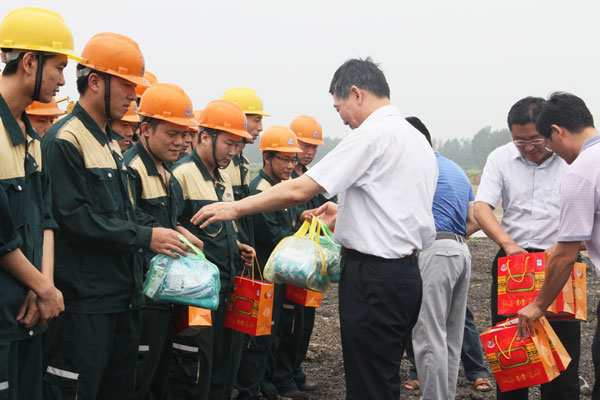 杜福生總經(jīng)理代表集團(tuán)職工對區(qū)領(lǐng)導(dǎo)的慰問表示誠摯感謝。面對持續(xù)的高溫天氣,集團(tuán)公司堅持以職工為本,制定了防暑降溫工作方案,在生產(chǎn)任務(wù)較重的情況下,合理安排了工作休息時間,為一線員工準(zhǔn)備了西瓜、冰鎮(zhèn)飲料等降暑食品以及藿香正氣水等物品,將公司宴會廳空調(diào)打開,為生產(chǎn)員工提供了休息場所,保障了一線職工的身體健康和企業(yè)的正常生產(chǎn)運(yùn)營。廣大職工紛紛表示,將牢記領(lǐng)導(dǎo)的關(guān)懷和叮囑,以飽滿的工作熱情投入的生產(chǎn)、建設(shè)中去,用努力工作回報各級領(lǐng)導(dǎo)的關(guān)心和厚愛。