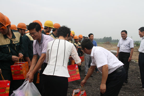 8月7日上午,兗州區(qū)委常委宣傳部長初建偉、區(qū)總工會主席王福偉率領(lǐng)區(qū)總工會領(lǐng)導(dǎo)班子一行來到經(jīng)典醫(yī)療器械項目工程現(xiàn)場,看望了辛苦奮戰(zhàn)在一線的集團(tuán)職工,把一批防暑降溫慰問品親自交到職工手中,深切表達(dá)了對一線職工的慰問與關(guān)懷。新兗鎮(zhèn)黨委書記張建芬,經(jīng)典集團(tuán)總經(jīng)理杜福生等領(lǐng)導(dǎo)陪同慰問。