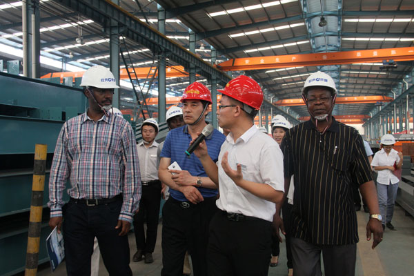 駐華大使們參觀了經(jīng)典集團的生產(chǎn)車間、辦公樓、職工培訓中心、宴會廳、愛心超市和千人職工餐廳。苗董事長向非洲客人介紹了經(jīng)典集團的生產(chǎn)經(jīng)營、技術創(chuàng)新、產(chǎn)學研合作、人才引進培養(yǎng)、企業(yè)文化建設、經(jīng)典產(chǎn)業(yè)發(fā)展等有關情況。大使們對經(jīng)典集團的科學化、信息化、現(xiàn)代化的企業(yè)管理給予高度評價,對經(jīng)典集團在飛速發(fā)展中取得的成就表示欽佩。