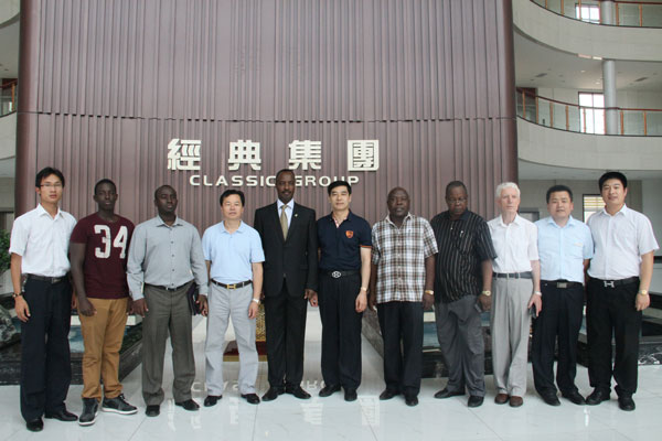 7月15日--17日由中國信息協(xié)會民營企業(yè)分會組織,盧旺達駐華使館查爾斯大使作為非洲經(jīng)貿(mào)考察團團長率領烏干達駐華大使、南蘇丹駐華公使、阿爾巴尼亞駐華大使以及盧旺達駐華商務參贊到經(jīng)典集團洽談業(yè)務合作。中國信息協(xié)會民營企業(yè)分會會長張鋁,國際部部長關偉娜,中國駐湯加王國前大使孫增森,經(jīng)典集團董事長苗樹文,總經(jīng)理杜福生及有關人員等陪同了此次活動。