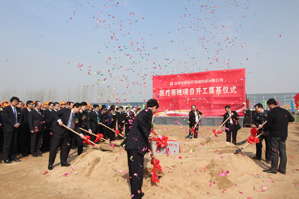 開(kāi)工奠基儀式由新兗鎮(zhèn)黨委書(shū)記張建芬主持。苗董事長(zhǎng)介紹了高端醫(yī)療器械項(xiàng)目情況。區(qū)經(jīng)濟(jì)和信息化局局長(zhǎng)、醫(yī)藥產(chǎn)業(yè)園建設(shè)指揮部副指揮韓春恒致了賀詞。隨后出席儀式的領(lǐng)導(dǎo)和嘉賓共同為高端醫(yī)療項(xiàng)目開(kāi)工剪彩、培土奠基。