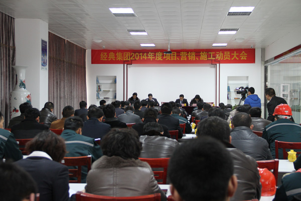 2月7日,為推進2014年度戰(zhàn)略目標順利實施,經典集團隆重召開項目、營銷、施工動員大會。集團公司高層領導苗樹文、杜福生、鄭建康、司紅玲、鄭利昌、高建國出席了此次會議,集團公司有關部門負責人、項目經理、營銷人員、施工隊長、生產車間負責人等80余人參加了此次大會。