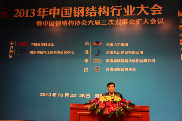10月23日-26日,“2013年中國鋼結構行業(yè)大會暨中國鋼結構協(xié)會六屆三次理事會擴大會議”在河南鄭州黃河迎賓館召開。會議由中國鋼結構協(xié)會、國家鋼結構工程技術研究中心主辦;河南鋼結構協(xié)會等單位承辦。會議邀請了國務院國資委行業(yè)協(xié)會聯(lián)系辦公室副主任張濤、河南省人大常務委員會副主任儲亞平、中國鋼鐵工業(yè)協(xié)會常務副會長朱繼民、中國鋼結構協(xié)會會長(中冶建筑研究總院院長)岳清瑞、常務副會長劉毅、副會長賀明玄、秘書長劉萬忠及副會長、常務理事單位等出席會議。經典集團董事長苗樹文、生產總經理王忠策等公司領導參加了此次大會,經典集團榮獲中國鋼結構協(xié)會第六屆理事會理事單位,苗樹文董事長為中國鋼結構協(xié)會第六屆理事會理事。