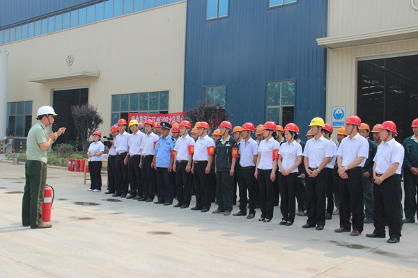 上午九時演習準時開始,因電線打火引發(fā)火災,經(jīng)典集團西小件區(qū),倉庫內(nèi)有大量油漆,稀料以及大批橡膠制品等,形勢萬分緊急,車間及時報警,綜合辦接警后立即與消防大隊報警,然后車間員工及后勤各部門員工,按火災預定方案迅速組成指揮部,迅速“搶救人員,疏散物資”,先由4名隊員接通消防栓,迅速鋪設(shè)水帶,打開高壓水槍滅火,后由4名佩戴防毒面具隊員,用干粉滅火器滅火(撲滅零星小火),火勢全部撲滅后,指揮員下達“演習結(jié)束”命令,護衛(wèi)隊清點物資裝備,列隊點名,兗州消防大隊房隊長做了點評,對我公司的應急演習做了高度評價。集團公司苗樹文董事長做了演習總結(jié),杜福生總經(jīng)理做了演習前動員講話,并陪同消防隊房隊長參觀了生產(chǎn)車間。