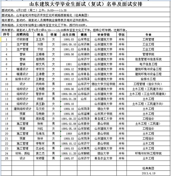 山東建筑大學招聘現(xiàn)場畢業(yè)生共投遞我公司簡歷213份,經(jīng)過初試篩選,進入復試人員25位,具體復試安排及進入復試人員名單請參考《山東建筑大學畢業(yè)生面試(復試)名單及面試安排》。