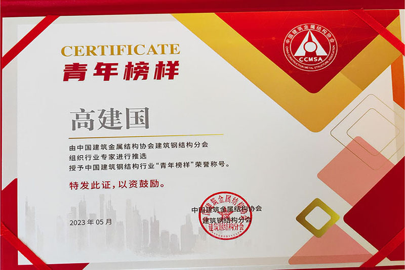 高建國同志榮獲中國建筑鋼結(jié)構(gòu)行業(yè)青年榜樣稱號(hào)