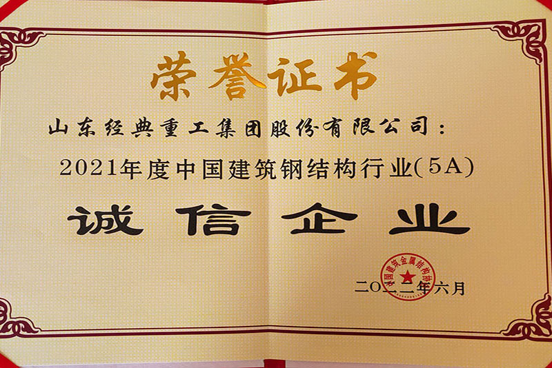 公司榮獲中國建筑鋼結(jié)構(gòu)行業(yè)5A誠信企業(yè)稱號(hào)