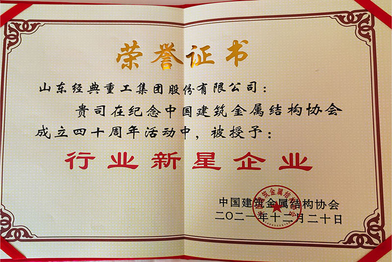 公司榮獲中國建筑金屬結(jié)構(gòu)協(xié)會(huì)行業(yè)新星企業(yè)稱號(hào)