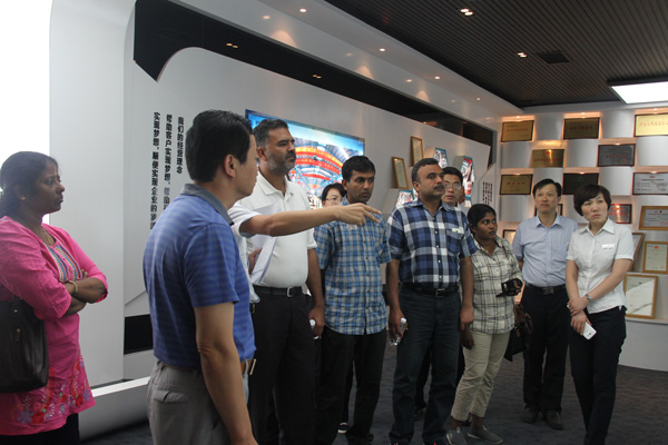 亞洲國家行業(yè)商會領(lǐng)導(dǎo)一行參觀了經(jīng)典集團(tuán)文化中心、項(xiàng)目管理中心、綜合辦公室、營銷中心和鋼結(jié)構(gòu)制造生產(chǎn)車間,杜福生總經(jīng)理介紹了經(jīng)典集團(tuán)生產(chǎn)經(jīng)營、技術(shù)創(chuàng)新、產(chǎn)學(xué)研合作、對外承攬工程等有關(guān)情況,并與外賓們親切交流。
