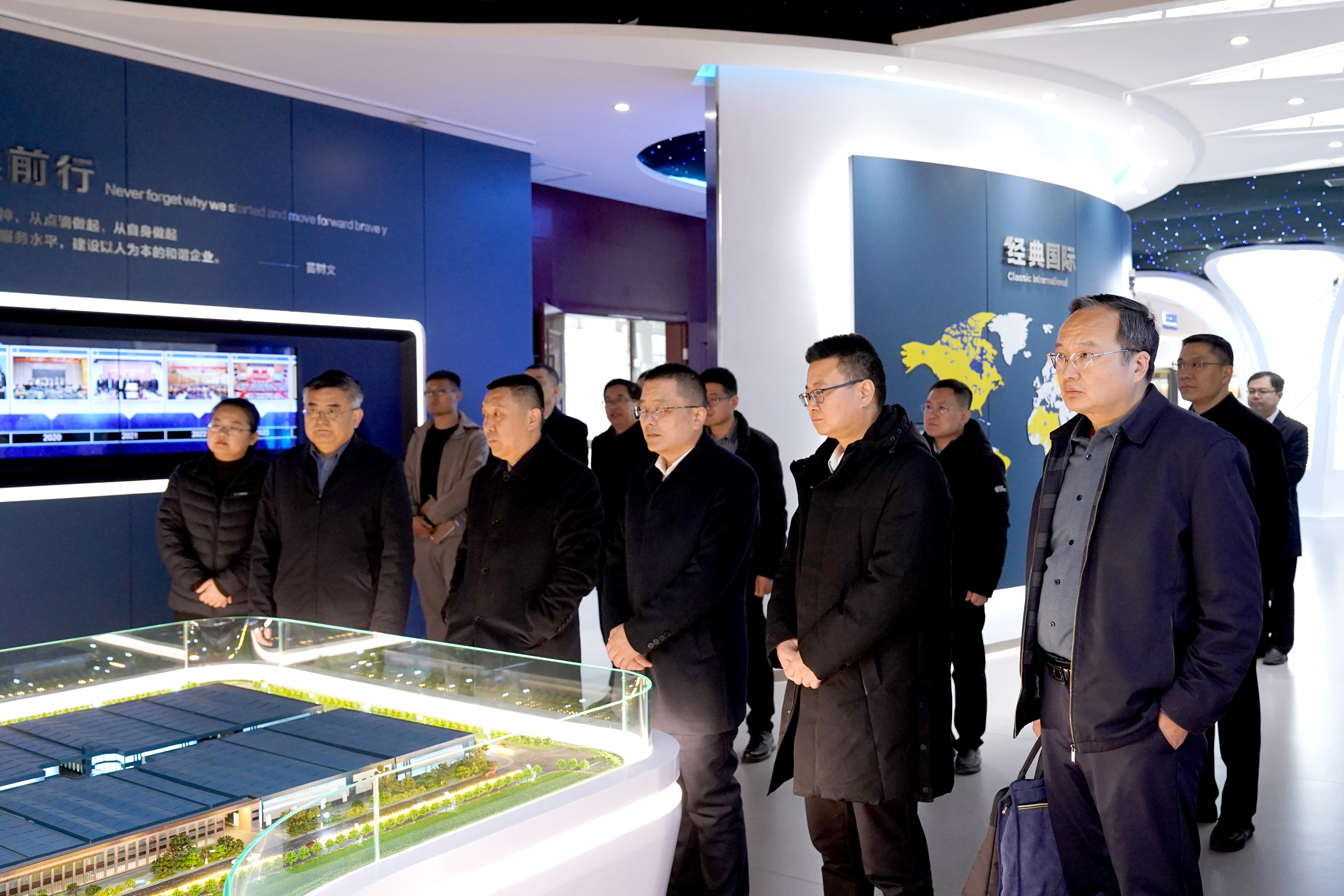 3月5日,濟(jì)寧學(xué)院黨委書記仲紅波,黨委副書記豐家雷,副院長劉國棟一行到經(jīng)典集團(tuán)調(diào)研科技創(chuàng)新、校企合作等情況。兗州區(qū)委書記王慶,區(qū)委副書記、區(qū)長王營,副區(qū)長楊陽,經(jīng)典集團(tuán)董事長史振華,新兗鎮(zhèn)、工業(yè)園區(qū)、教體局、科技局等部門負(fù)責(zé)人陪同調(diào)研。