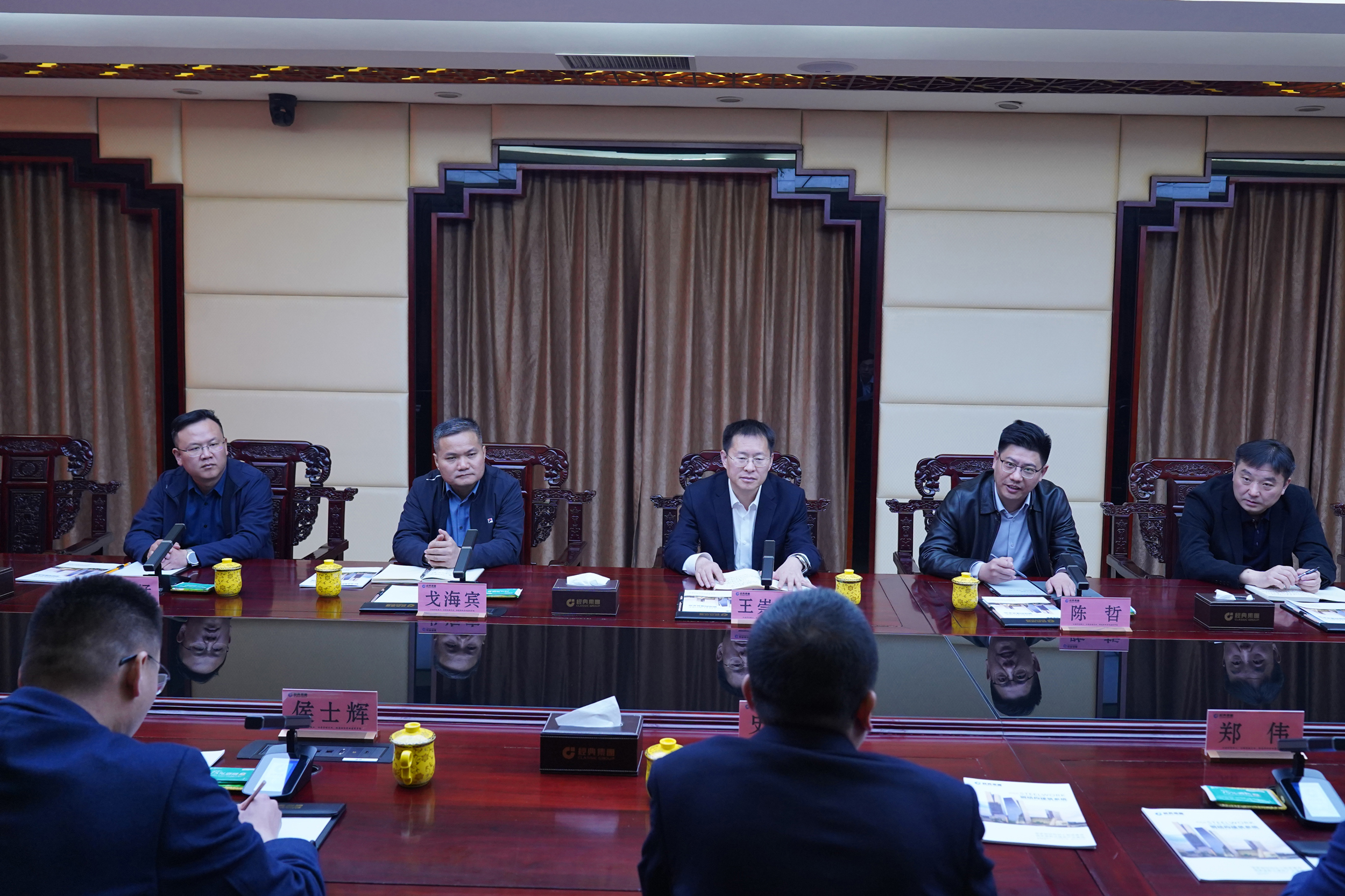 隨后召開合作洽談會(huì)。王崇景總經(jīng)理介紹了濟(jì)寧能源發(fā)展集團(tuán)實(shí)施“一體兩翼、雙輪驅(qū)動(dòng)+園區(qū)經(jīng)濟(jì)”戰(zhàn)略,加快構(gòu)建“12326”產(chǎn)業(yè)矩陣,發(fā)展新能源、港航物流、高端制造、大宗商品貿(mào)易等業(yè)務(wù)有關(guān)情況,并對經(jīng)典集團(tuán)發(fā)揮產(chǎn)業(yè)鏈優(yōu)勢,創(chuàng)新發(fā)展模式,建設(shè)精品工程,打造產(chǎn)業(yè)集群給予了高度評價(jià)。